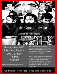 La Campaña para una Moratoria a las Deportaciones junto con organizadores del 10 de marzo tendrá una noche de cine. Estaremos mostrando documentales sobre la guerra civil en El Salvador. y veremos otra lucha del Pueblo. Después podremos conversar amigablemente.